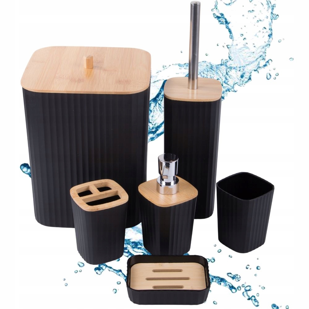 Koupelnová sada Koupelnový kartáč Toaletní papír Dávkovač Koš Bambus 6 kusů