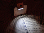 Diody LED można regulować kąt pochylenia w zależności od potrzeb. Cały mechanizm jest oparty w formie daszka na głowie. Można odchylać daszek w górę lub w dół.