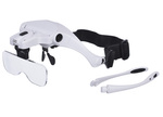 Diody LED można regulować kąt pochylenia w zależności od potrzeb. Cały mechanizm jest oparty w formie okularów na głowę. Nauszniki można wymienić na regulowany pasek.