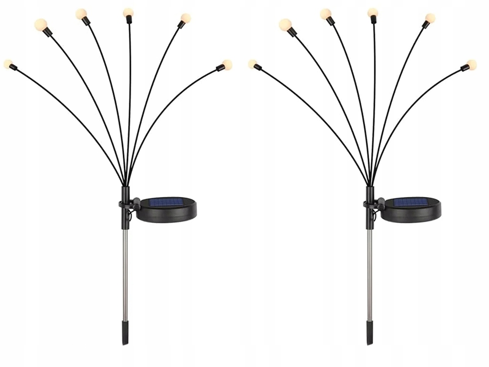 Solárne záhradné svietidlá s teplými farebnými LED guľami sú efektnou dekoráciou pre záhrady, trávniky, chodníky a príjazdové cesty. Každá lampa je vybavená 6 svietiacimi guľami namontovanými na ohybných ramenách, ktoré sa jemne pohybujú vo vetre a po zotmení vytvárajú atraktívny svetelný efekt. Súprava sa skladá z 2 svietidiel, čo umožňuje symetrické alebo voľné umiestnenie dekorácií v záhrade.